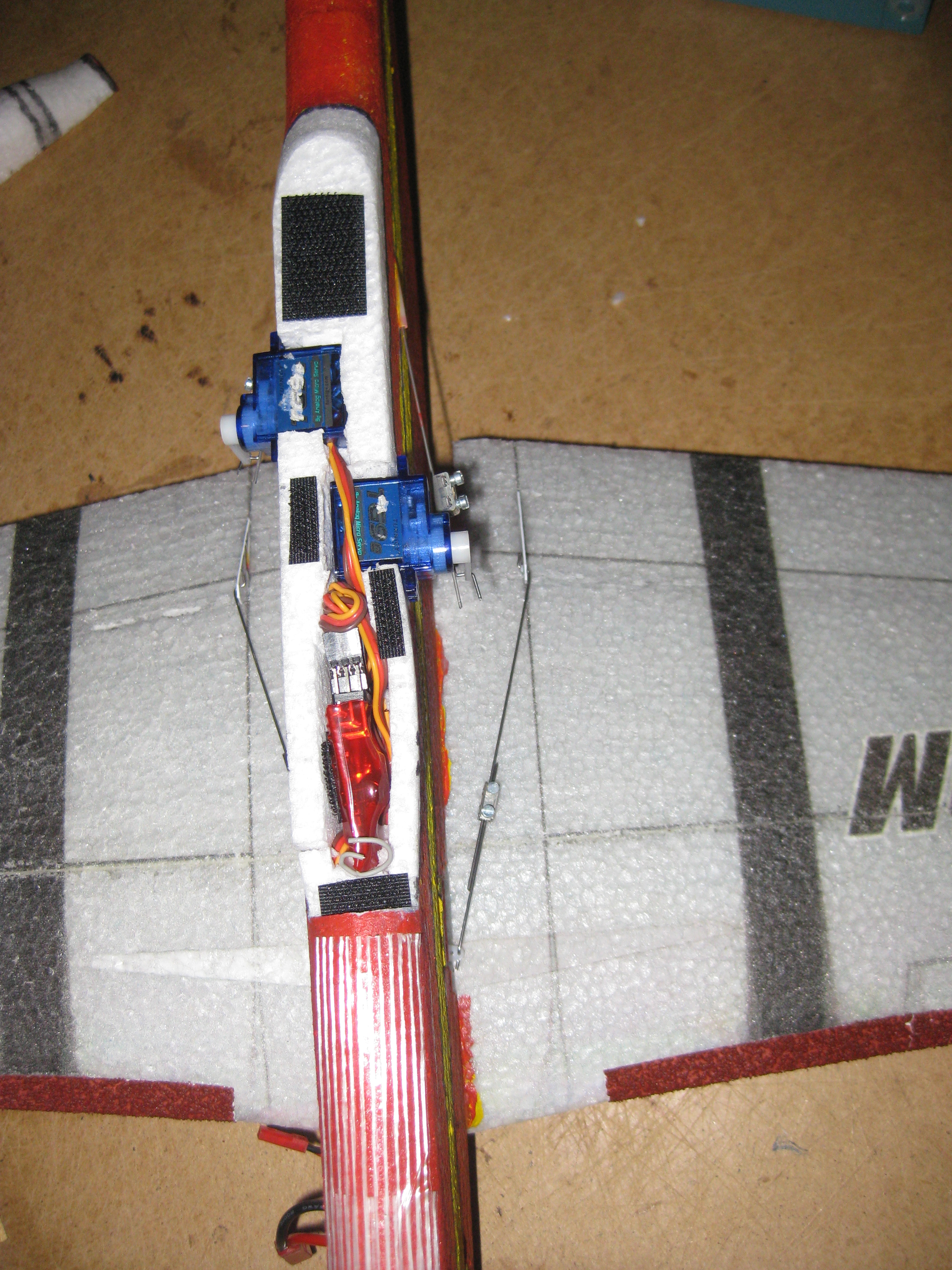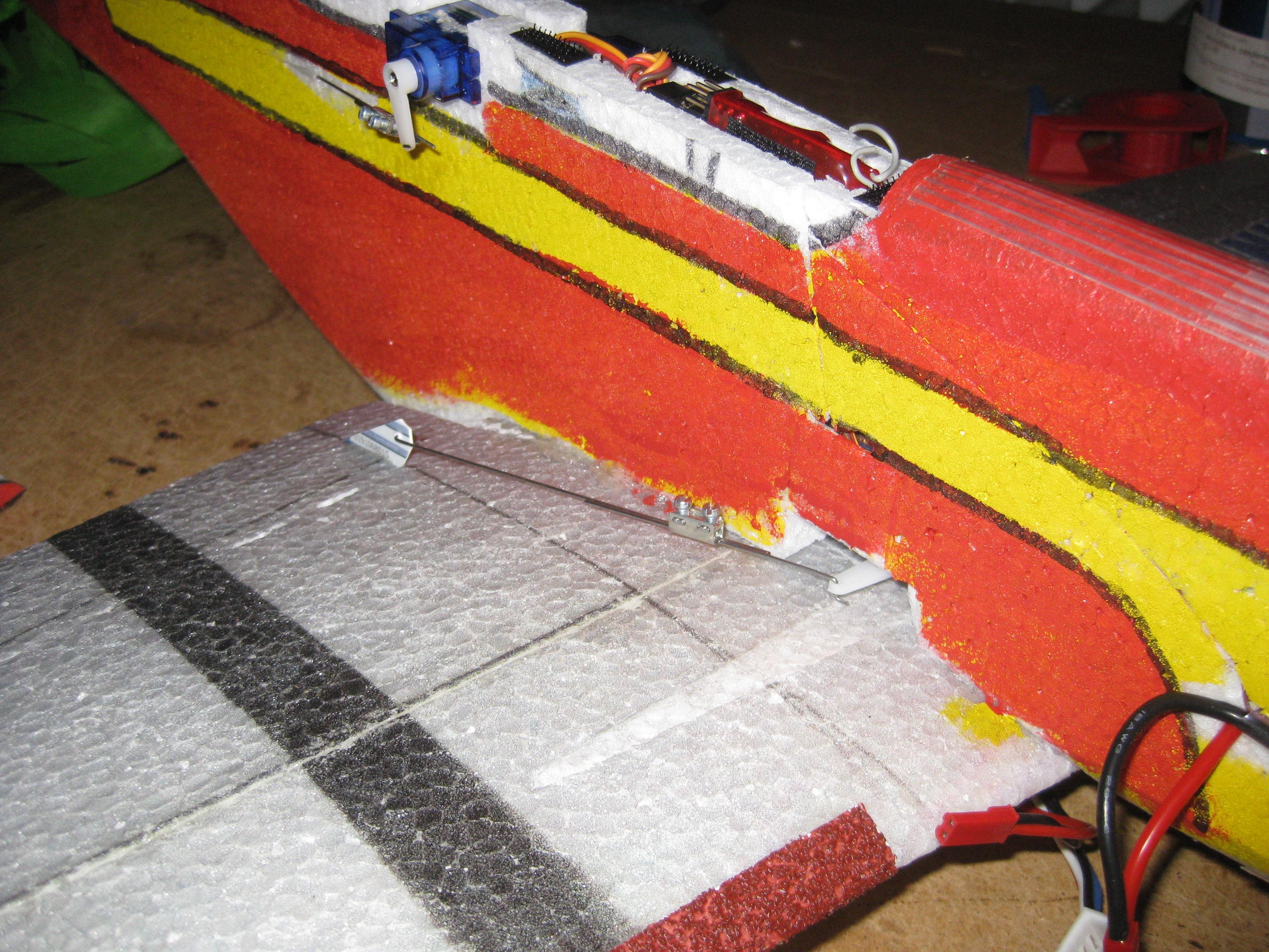 Ich habe sie seitlich aus dem Rumpf ragen lassen, dann ist die Verlegung der Anlenkungen gerade und einfach.