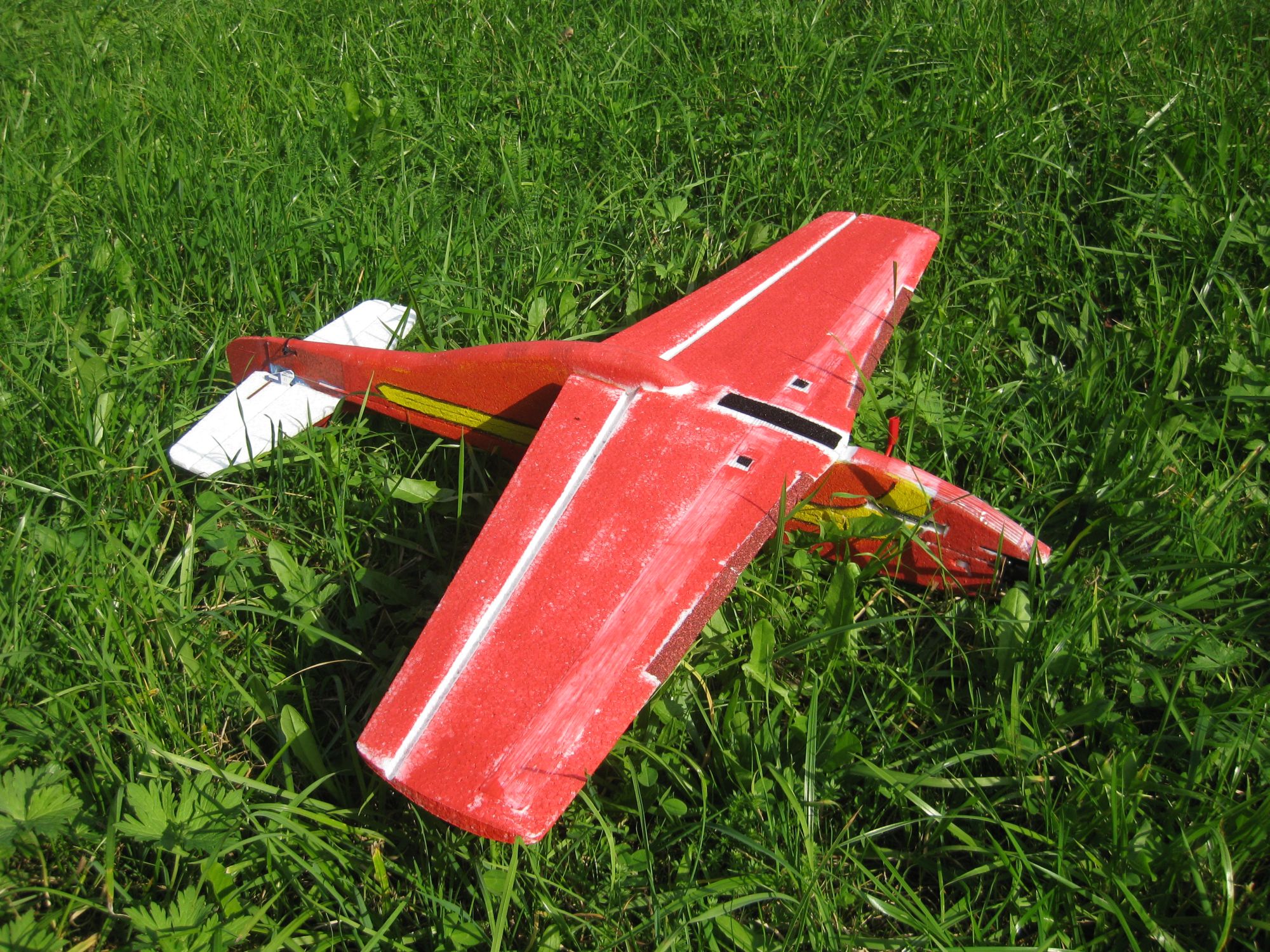 Nachdem der Erstflug erfolgreich war, wurde das Farbschema komplettiert. Der Acryllack auf Wasserbasis aus dem Baumarkt deckt auch gut die bereits vom Hersteller aufgetragene Farbe. Es ist nicht der liebevollste Anstrich …